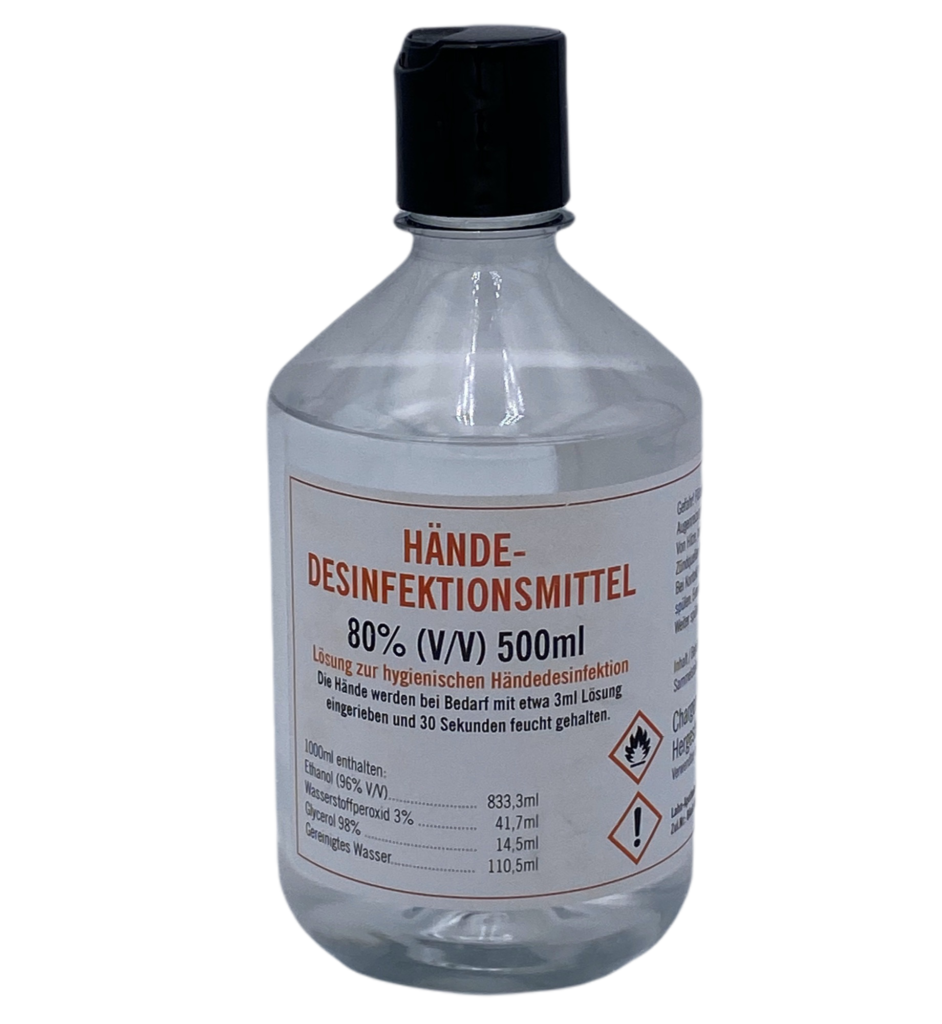 500 ml Desinfektionsmittel nach WHO Standard.